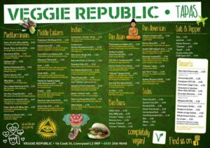 If you haven’t yet been to Veggie Republic you’re seriously missing out! Located on Cook Street opposite Slug & Lettuce in Liverpool city centre, Veggie Republic is Liverpool’s first ever fully vegan restaurant. For the last four years they’ve developed a formidable reputation — becoming Liverpool’s ‘vegan tapas pioneers’ — and have recently been featured in La Vida Liverpool’s 15 Best Places of 2021 and by Explore Liverpool.