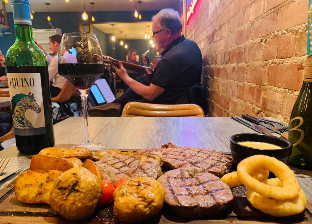 Friday and Saturday nights are unsurprisingly busy, particularly as there’s live music on Friday nights including acoustic maestro Del Solo and Two Blue jazz duo. There may not have been 25% off when we visited on a Friday evening recently, but the steak, Malbec and jazz combination was an absolute treat!