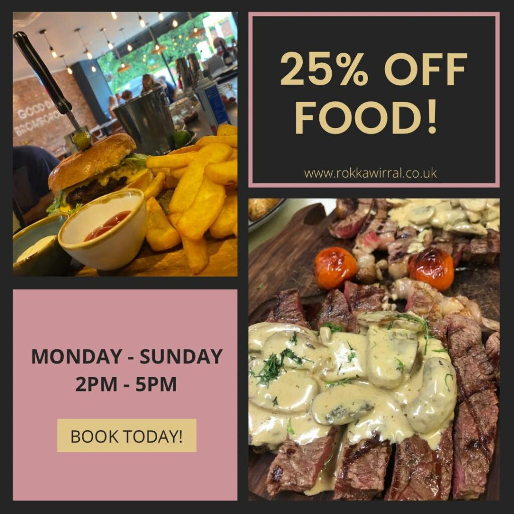 25% off food, 2pm-5pm, 7 days a week / Rokka / 150 Allport Road, Bromborough, CH62 6BB / 0151 334 1904