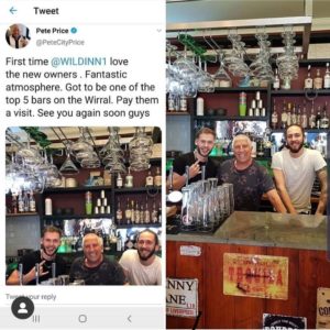 Liverpool legend Pete Price has frequented Wild Inn on more than one occasion and has taken to Twitter to declare that it’s one of the best bars around! If you have a drink at Wild Inn you’re likely to bump into top musicians and creatives, and they’ll all tell you there’s no better music themed venue around!