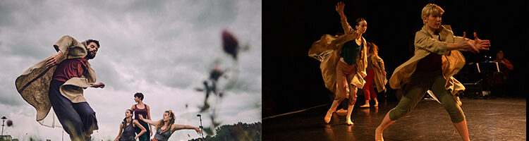 Trails is an evening of extracts from the trilogy inspired by the work of landscape painter JMW Turner (1775 -1851) and created by Dora Frankel and composer Peter Coyte, with costumes by Kate Collins. The trilogy comprises The Unfolding Sky: Turner in the North 2013, Figures in a Floating Landscape 2019 and Tread Lightly on the Planet. Dance and electronic music are fused in these works, performed by dancers Luca Braccia, Livia Massarelli and Zara Sands.