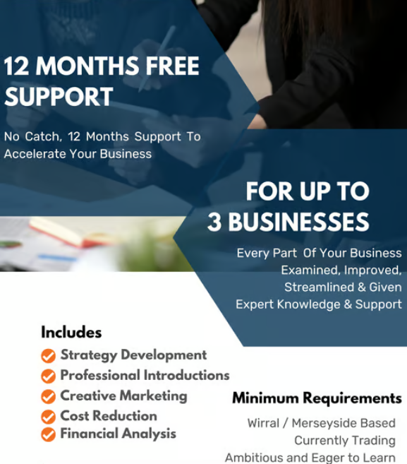 To be considered for Martin’s free support programme you must be based within the Wirral/Merseyside area and have the desire and willingness to learn in order to take your business to the next level. Only 3 carefully selected businesses will qualify for the free programme but other great businesses that don’t quite make the cut can still qualify for his ‘pay on results service’.