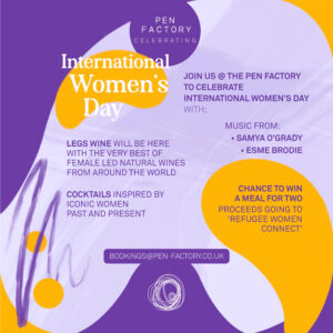 If you’re free on Tuesday 8th March 2022 then head on down to The Pen Factory on Hope Street for this very special event for International Women’s Day! Enjoy fantastic live female vocalists, quality female selected natural wines and iconic female inspired cocktails — with incredible small plates should you so wish!