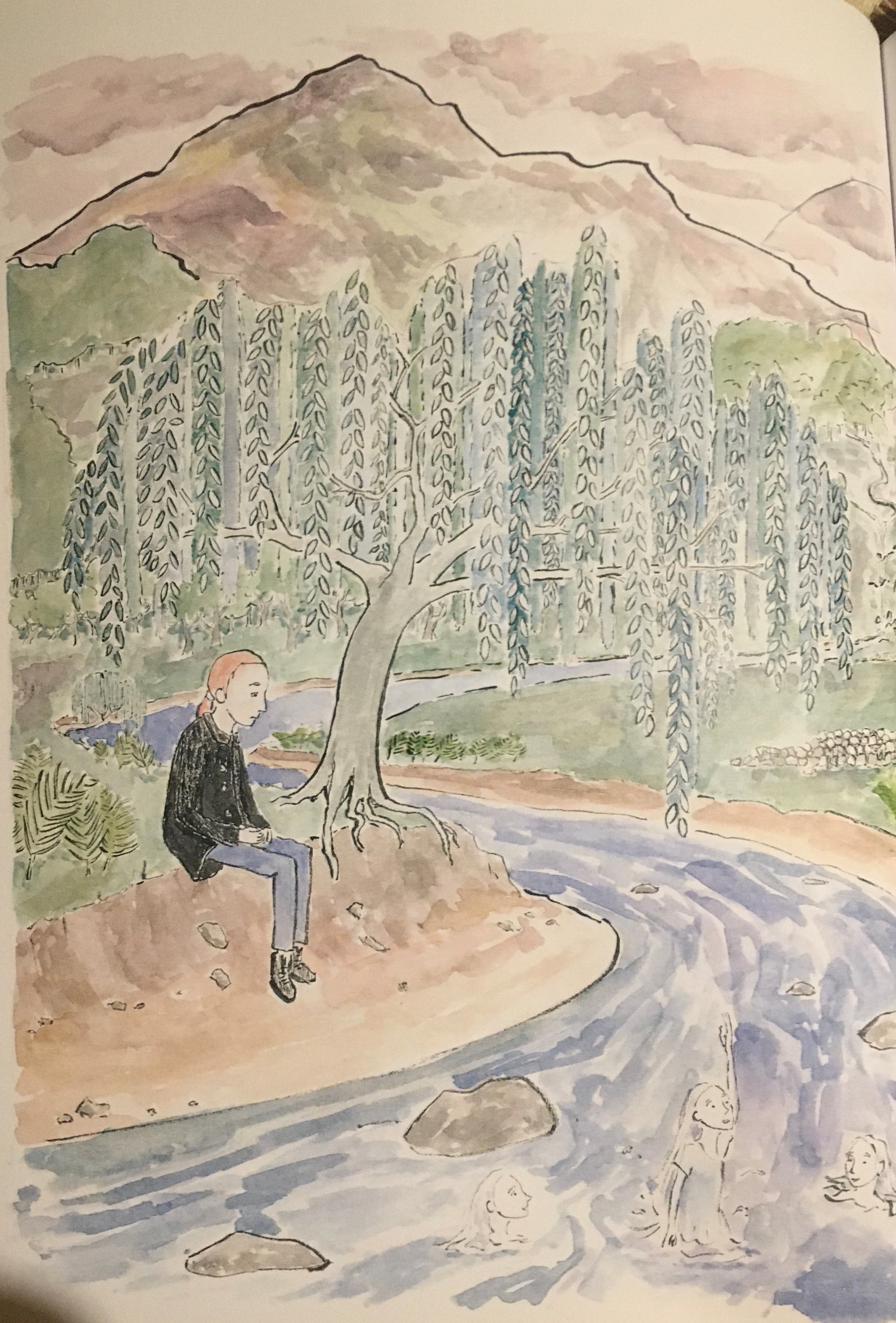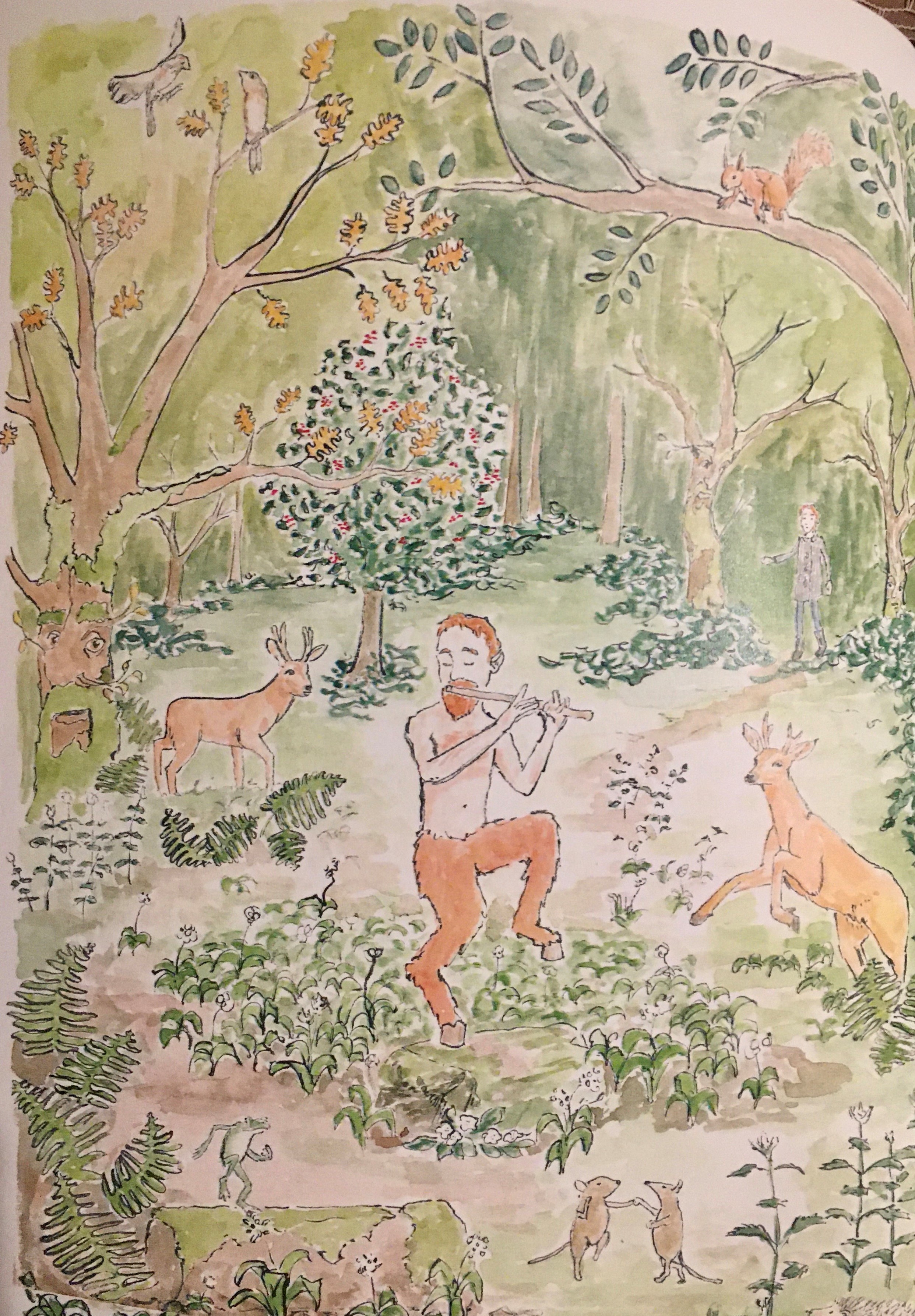 After being directed by the nature spirits and hearing their songs, she finds Pan atop of a mountain, and Pan allows Jackie to send some special words to Japka in the spirit world – via nature magic. Then Pan comforts her with his great knowledge of this world and the next. As I was reading this book to my eleven-year-old son I found myself choked up and teary, this is a profound emotional journey. My son who has autism/ ADHD can’t usually sit still for very long, but I noticed he was also very captured by the words, songs, and illustrated images.
