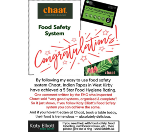 CHAAT ACHIEVES 5 STAR FOOD HYGIENE WITH KATY ELLIOTT!
