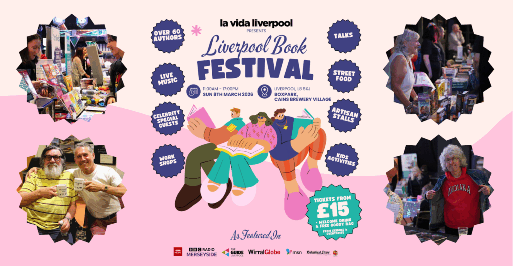 After the incredible success of the first event in September, Liverpool Book Festival is set to be even bigger and better on Sunday 8th March 2026! From 11am until 5pm at BoxPark, the event will feature over 60 authors signing and selling their books, publishers, celebrity special guests, talks, workshops, live music, artisan stalls, street food, cosplay characters, children’s activities and more!