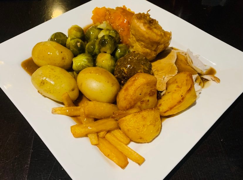 Starters include dishes such as festive pigs in blankets with a cranberry dipping pot, Yorkshire pudding filled with beef and buffalo cauliflower wings. Mains include the likes of turkey and ham roast, steak pie, salt and pepper sticky chicken and the vegan burger. Meanwhile, heavenly desserts include the likes of Christmas pudding and chocolate brownie! Yum!