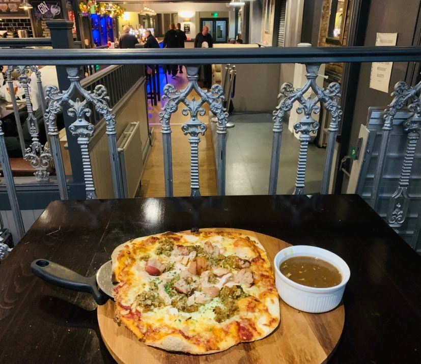 Perfect for watching the World Cup or casual dining, the bar menu features small plates such as chicken wings and garlic doughballs, loaded fries, homemade pizza and homemade burgers! There’s even a Festive Pizza to get you in the Christmas spirit — with mozzarella, turkey, sage and onion stuffing, pigs in blankets and a gravy pot! Very reasonably priced too!