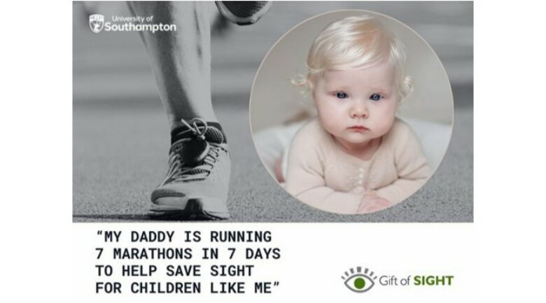 A father from Liverpool is about to embark upon seven marathons in seven days to help raise vital funds for The University of Southampton’s paediatric albinism and blindness research. Joe Marsden is taking on the gruelling running challenge due to his one-year-old daughter Raya suffering from a rare genetic condition called albinism which can severely affect vision.