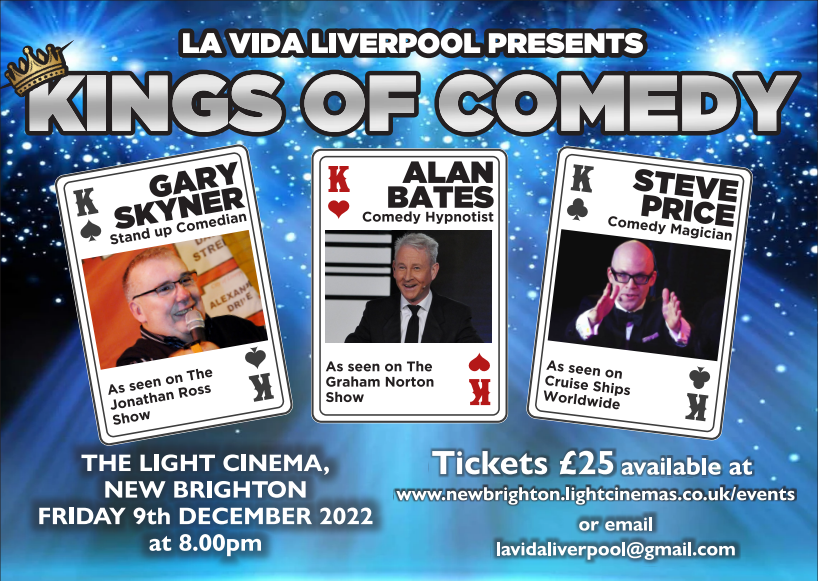 A hilarious, mind blowing and first of its kind comedy show is coming to New Brighton this December! Promising to be a night of entertainment like no other, KINGS OF COMEDY brings a comedy hypnotist, a comedy magician and a stand up comedian LIVE ON STAGE at The Light Cinema, New Brighton, on Fri 9th December! Three award winning acts for just £10!