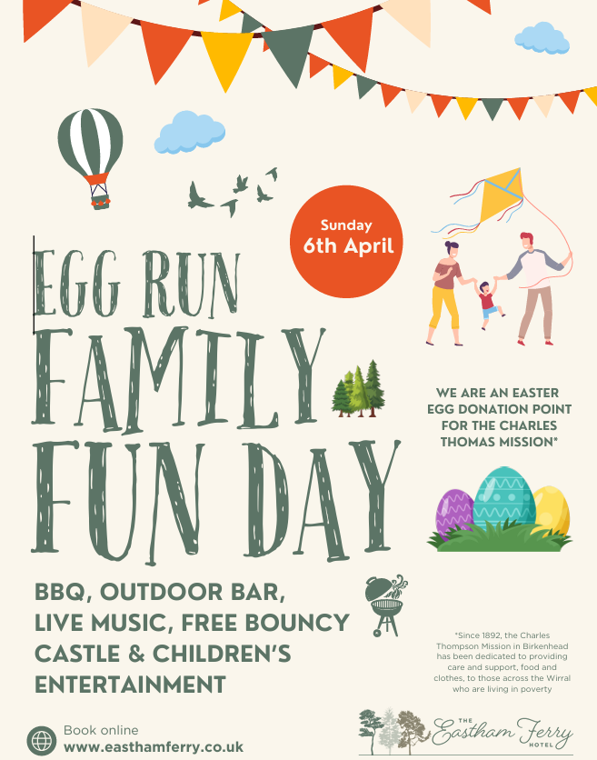 Egg Run Family Fun Day / Sun 6th April 12-5pm / Eastham Ferry Hotel / Ferry Road, Eastham, Wirral, CH62 0UA / 0151 309 4942