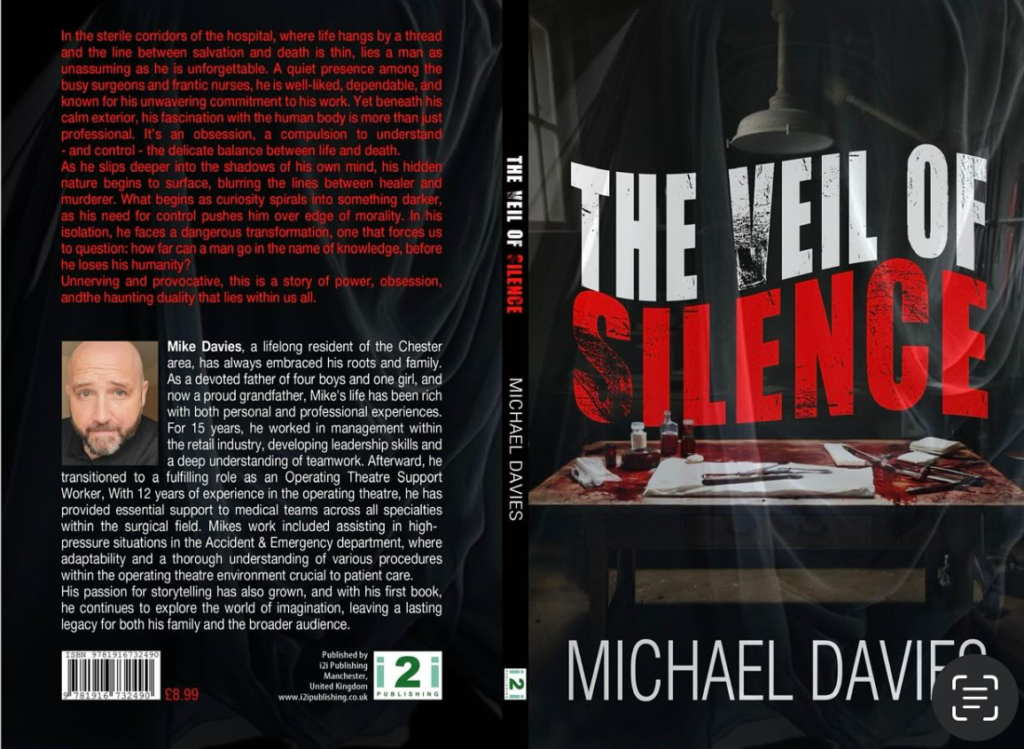 Set in Liverpool, Michael’s gripping psychological thriller follows the story of hospital worker turned serial killer, Thomas Greene, and takes the reader on a fascinating journey through the twisted mind of a psychopath. The Veil Of Silence has received rave reviews on Amazon, Waterstones, WHSmith and other platforms and such is its success, Michael has been nominated for a Crimson Quill Award.