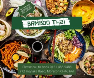 Situated on Hoylake Road just up from Moreton Cross and open Weds-Sun from 5.30pm (lunch opening coming soon), Bamboo Thai has had rave reviews since opening in December 2021. The new restaurant offers quality Thai street food dishes in a relaxed open plan environment with sumptuous modern decor — with delivery and takeaway also available.