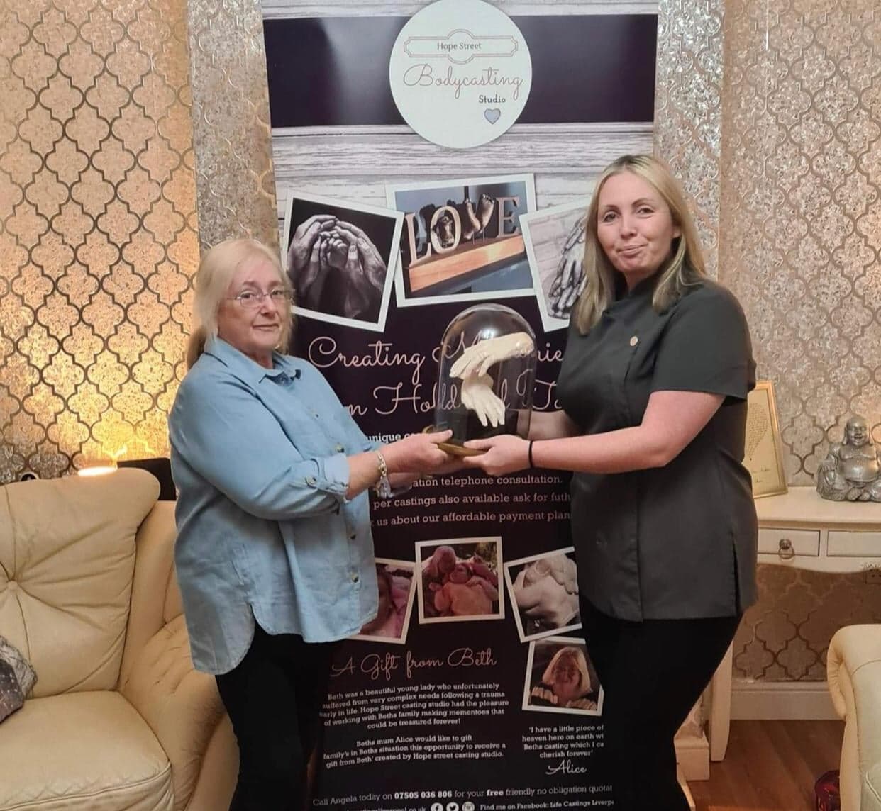 Alice contacted Ange Donohue from Hope Street Casting Studio – an independent business in Liverpool that specialises in body casting and turning love, memories and people into works of art. She worked with Ange to create a beautiful sculpture of Beth’s hands to immortalise her beauty and after understanding the power of the tangible gift, she contacted Ange again to discuss helping others.