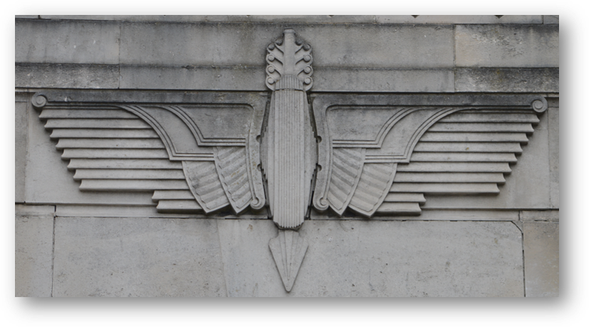 Over the doorways on the wonderful Herbert Rowse designed building on The Strand you will also find Liver Birds but, again, they are not immediately recognisable . If you look closely however you can see the pointed beak, eyes and outstretched wings of a Liver Bird which is flying straight towards you.