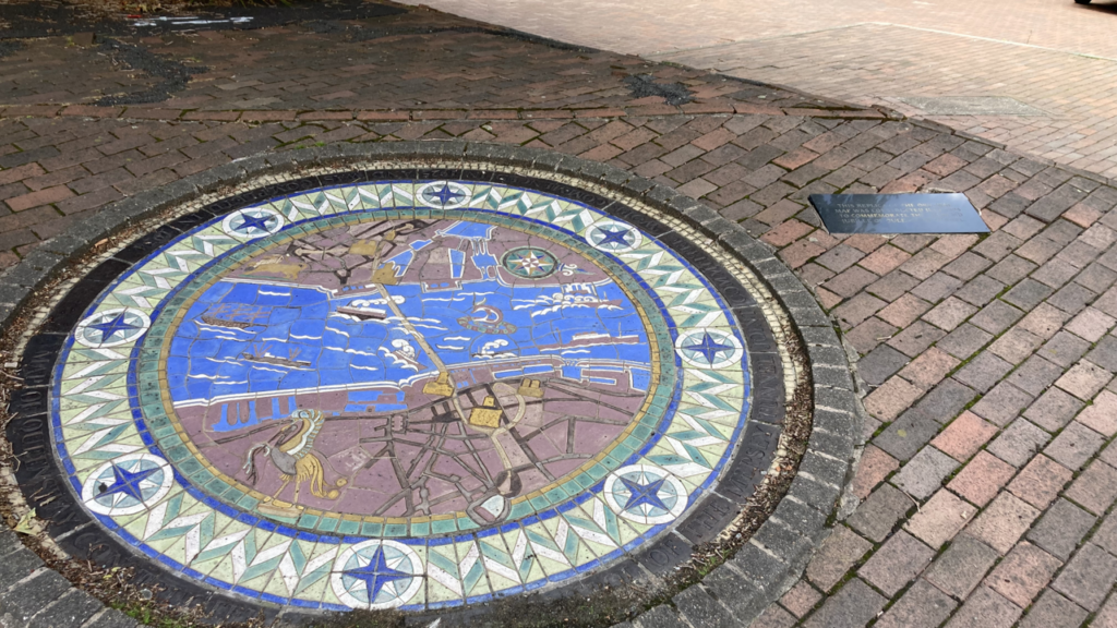 There is another Liver Bird close to the mouth of the Queensway Tunnel which although not very big it is very striking. Next to the car park used by Tunnel Police and staff vehicles there is a mosaic of the river and the tunnel. This is not the original that was made in 1934 but it is a replica of the original and was made in 1994 for the diamond jubilee of the tunnel.