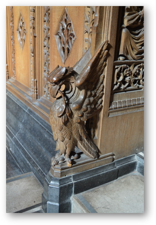 There are many fine carvings in Liverpool Cathedral and not least among these are these wonderful Liver Birds which guard the entrance to the choir stalls.