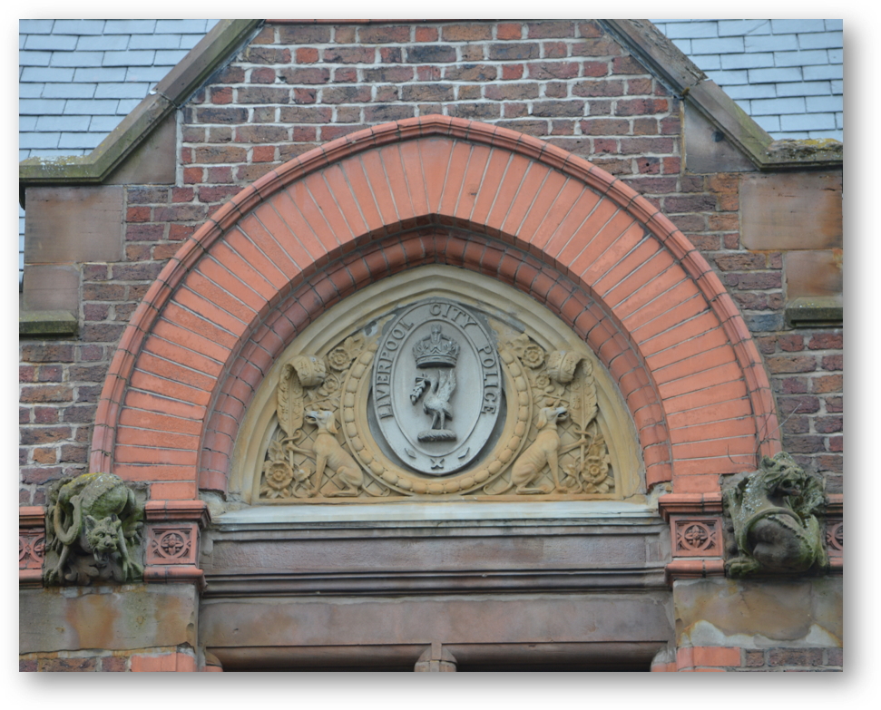 These Liverpool City Police arms are in Derby Road, Old Swan, on a Police Station that has also been converted into flats. I don’t know if the dragons on the building in Old Swan were an indication of the ferocious nature of the officers who were posted there.