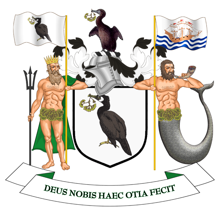The supporters of the Arms are, on the left, Neptune the Roman God of the Sea and, on the right, Poseidon the Greek God of the Sea to emphasise that Liverpool’s wealth comes from the sea. Neptune is sitting on a bail of cotton as a reminder of the importance of cotton to the Liverpool economy.