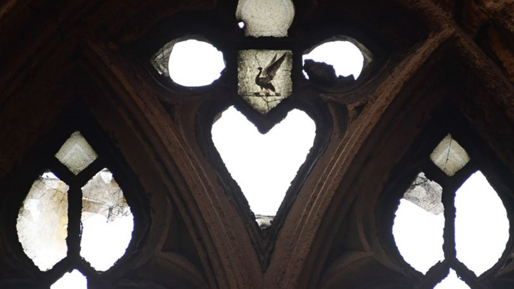 This Liver Bird is in St Luke’s Church at the top of Bold Street. St Luke’s is commonly called “The Bombed Out Church” because it was reduced to a shell in the May Blitz of 1941. Almost all the glass in the church was destroyed by the fire that ravaged the building but this Liver Bird survived. All of this is enough to make it my favourite Liver Bird but what really inspires me about it is the symbolism of it.