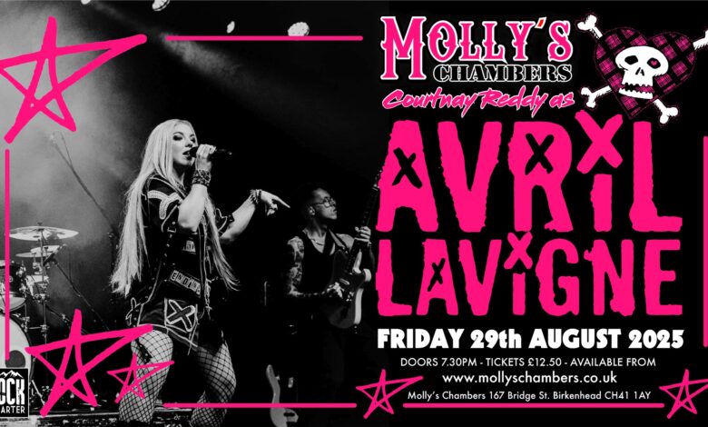 Hosted at one of the Wirral’s coolest live music venues, Molly’s Chambers, this special event promises a high-energy performance celebrating one of the early 2000s’ most iconic artists. Expect a night full of nostalgia, with a talented tribute band performing Avril’s biggest hits, deep cuts, and fan favourites — all with the same rebellious attitude and infectious spirit that made Avril a global sensation.