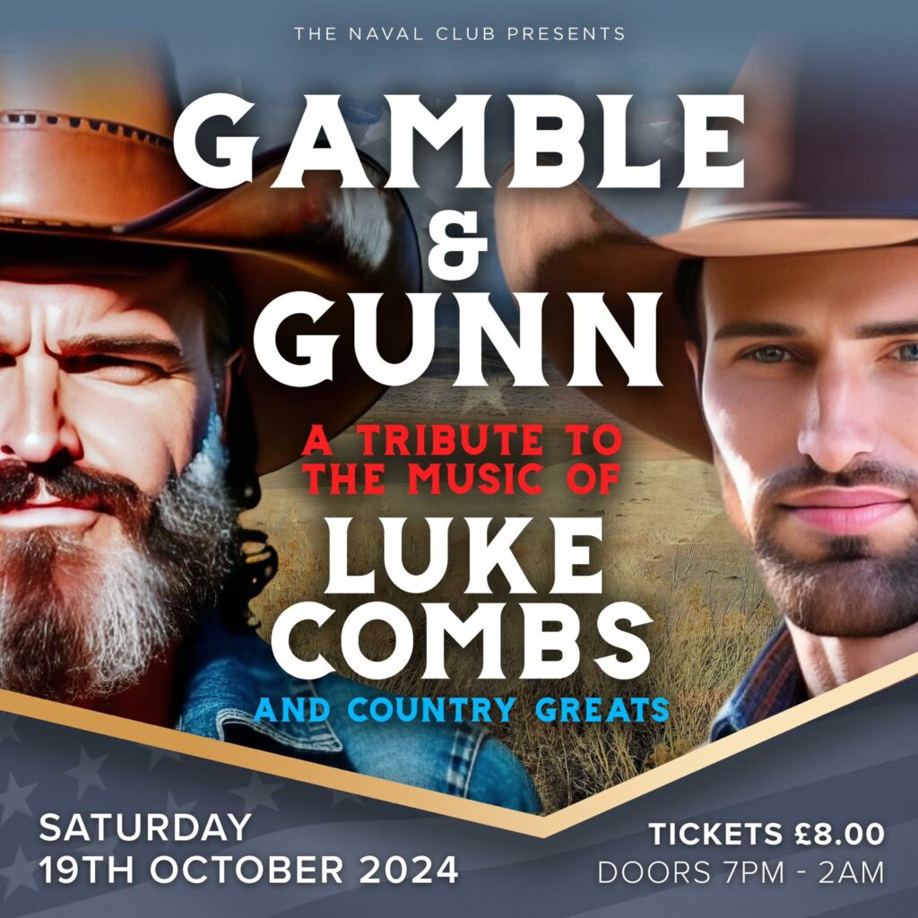 A huge Country music showcase is coming to Liverpool Naval Club on Saturday 19th October from 7pm! The legendary Gamble & Gunn duo are bringing their Tribute To Luke Combs & Country Greats in what promises to be an incredible night of Country music nostalgia!