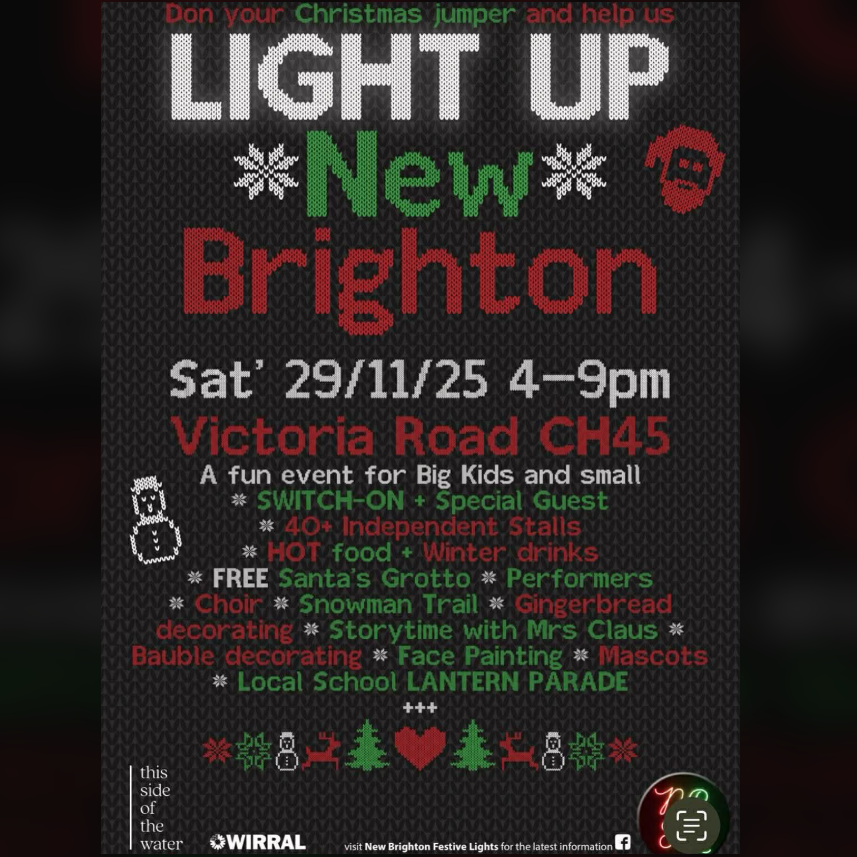 New Brighton is set to sparkle brighter than ever as Light Up New Brighton arrives on Seabank Road from 11.30am and Victoria Road from 4pm on Saturday 29th November. The huge, free community event promises an unforgettable evening packed with festive magic, live entertainment, family activities, a Christmas market and the Christmas Tree Switch On!
