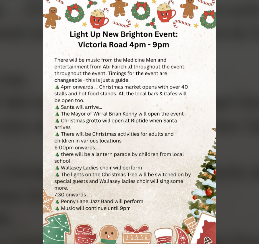 This Side Of The Water’s Jess Waring said: “The first ever Light Up New Brighton event has been an amazing community effort. This year we are lighting up 54 lamp posts, two Christmas trees and more to put the BRIGHT in New Brighton! We have had some amazing local sponsors — with businesses, community groups and individuals making this possible. It’s going to be magical!”