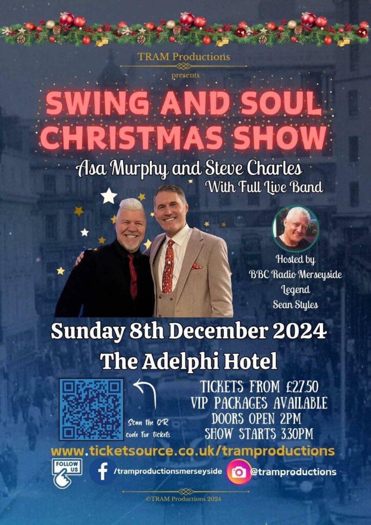 Two Merseyside legends are set to grace the iconic Adelphi Hotel ballroom this December for a very special Swing & Soul Christmas Show! On the afternoon of Sunday 8th December, Asa Murphy and Steve Charles will be performing classic hits alongside a full live band — with BBC Radio Merseyside’s Sean Styles host and compere on the day.