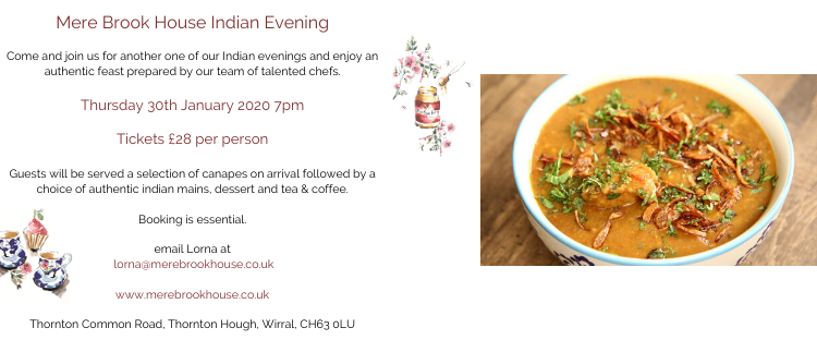 INDIAN DINING EVENT COMING TO MERE BROOK HOUSE!