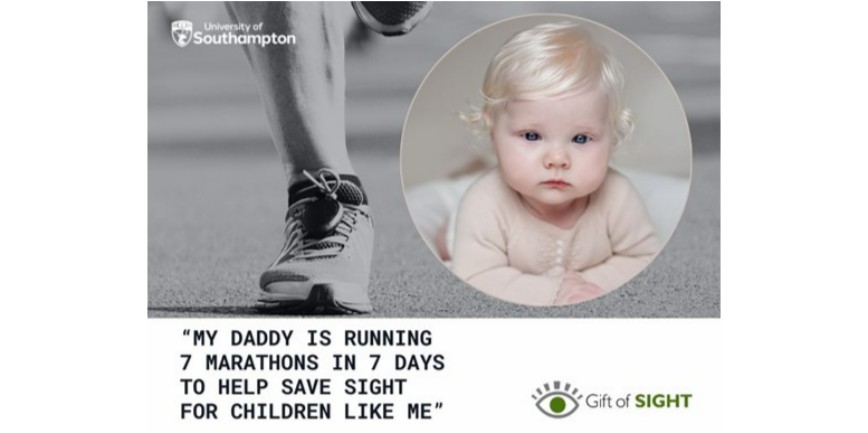 A father from Liverpool has ran an incredible seven marathons in seven days, raising almost £30k for The University of Southampton’s paediatric albinism and blindness research. Joe Marsden took on the gruelling running challenge due to his one-year-old daughter Raya suffering from a rare genetic condition called albinism which can severely affect vision.