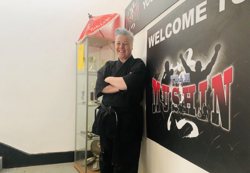 Sue said: “My childhood was very traumatic and martial arts most definitely saved my life. I started out at Croxteth Ju-Jitsu club with Alan Pierpoint, Alan Lynch and John Heynes, then at Lowlands Ju-Jitsu Academy with Kenny Blundell Sensei, and have since had a colourful career. I’m a Shihan, 7th Degree blackbelt, was a Regional Officer for Ju-jitsu in Liverpool and am owner of Team Mushin CIC.”