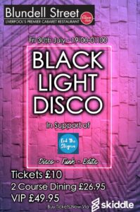 With so many different events planned in Liverpool as restrictions relax, there certainly aren’t many that offer top quality disco, funk and house with dinner and VIP packages available. With money raised for a vital cause in the process, Black Light Disco at Blundell Street is set to be a very special regular night with a great atmosphere and ethos.
