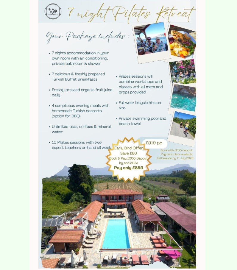 Pauline is teaming up with fellow Lolita trainee Janet to host a luxury Pilates retreat in Turkey, expanding her reach and bringing her unique approach to an international audience. Featuring 7 nights accommodation in a private villa in the foothills of the Golgeli Mountains, the retreat includes a week of Pilates in a stunning setting with plenty of opportunity to unwind and embrace the beauty.