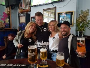 We started our pub crawl here — with the two guys having pints of Guinness and the two girls having bottles of beer. We sat in one of the snugs with views over the Mersey and chatted to a few people who were intrigued by our LVL shirts. They wished us luck as we explained that we were about to hit no less than 8 local pubs!