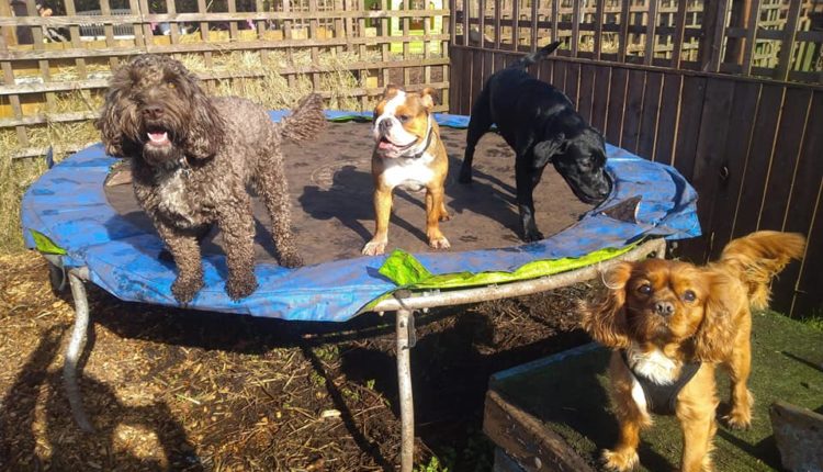 Katy’s dog park service (ideal for when people are at work) is available Mon-Fri. There’s a fun play area with playhouses, toys, a sandpit, a paddling pool and a trampoline (the dogs LOVE the trampoline) and also a large open field. Due to popular demand, another field is being introduced soon too so it’ll be even bigger! In addition to this, the dogs are sometimes taken on adventure days out (whilst on leads).