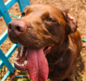 Lucy is a gorgeous chocolate lab who is obsessed with playing fetch! During our visit, it was difficult to spend time with the other dogs because Lucy wanted us to throw balls for her all morning! A beautiful, sweet and energetic dog, we love Lucy — almost as much as she loves the field and balls at the dog park!