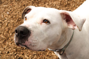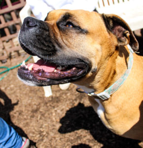 Cassie is a 6-year-old American Bulldog who is known as ‘Momma’ of the pack. If any of the other dogs misbehave you can count on Cassie to keep them in line and all the other dogs respect her greatly. Despite this, she is extremely sweet and affectionate and loves kisses — as our photographer, Ged, found out!