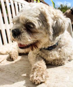 Teddy is a small, white Bichon Cross who thinks he’s the alpha male of the pack, but in reality is a soft, cuddly little cutie (rather like our Editor). Teddy is the one who welcomes the new dogs when they visit and everyone loves Teddy!