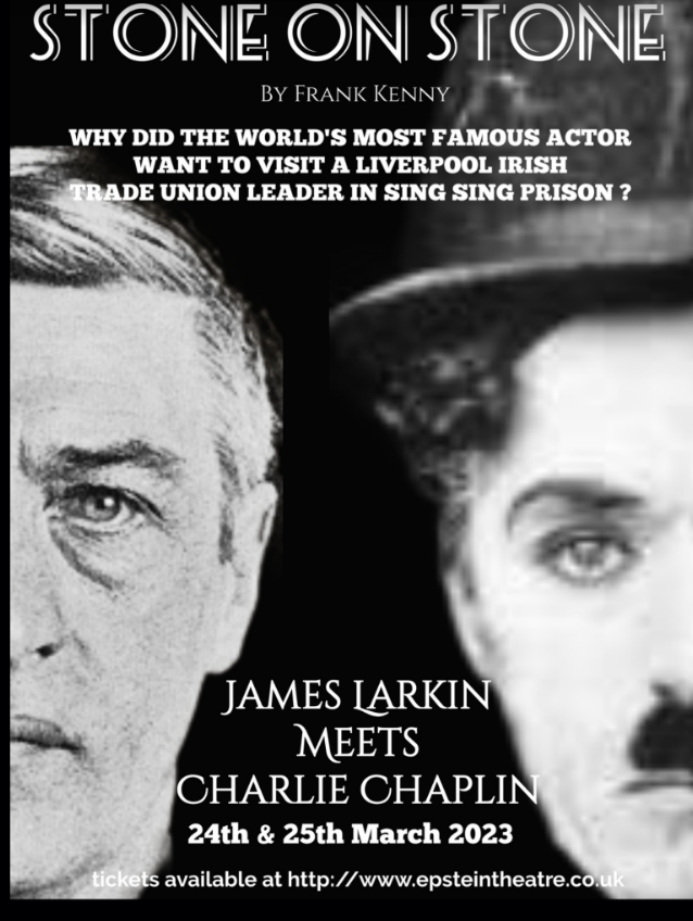 Stone On Stone is a ground-breaking theatrical masterpiece based on James Larkin’s incarceration in the notorious American prison, Sing Sing, and his relationship with the legendary Charlie Chaplin during that time. A rebel and revolutionary from Toxteth, Liverpool, ‘Big Jim’ has been recognised in Ireland for his heroic human rights efforts — yet never by Liverpool.