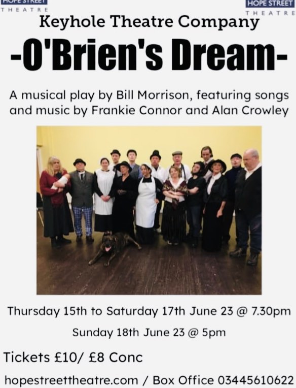 O’Brien’s Dream is coming to Hope Street Theatre in Liverpool on the evenings of 15th, 16th 17th and 18th June 2023, courtesy of Keyhole Theatre Company, with tickets starting at just £8 plus booking fee. The play tells the profound story of the plight of the Irish in Liverpool during The Potato Famine.
