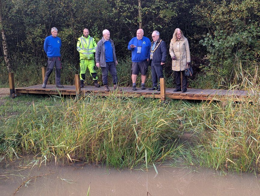 The wooden walkways were installed in areas that are prone to flooding by club volunteers with some help and advice from Nick and his team from Hinksey Heights Nature Reserve in Oxfordshire. The gravel paths were laid by local firm Gavin Building Services. Following this the team restored the ponds as well as installing benches and season-specific signs to aid in educating people of the species that call the Claypit their home.