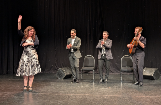 For the final touch, we got one last surprise- a dance from Espíritu Flamenco’s founder herself- Sarah Chambers! As Peña, Carpio, Chambers and Guerrero spontaneously danced, sang and played the guitar, the audience cheered with joy. The final applause was thunderous- Espíritu Flamenco’s 3 de Corazones truly delivered the unforgettable, fiery and passionate spirit of flamenco.