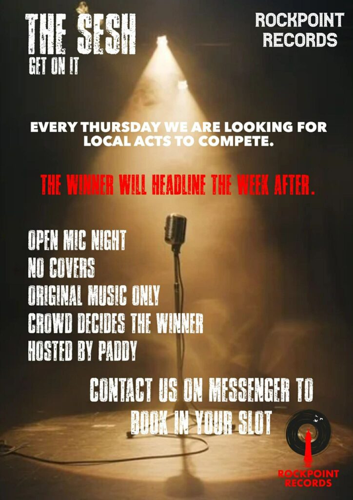 The crowd plays a central role, helping decide which act truly connected on the night. The reward is more than bragging rights. The winning artist or band will secure a paid headlining slot at Rockpoint Records the following week — giving performers the rare opportunity to return to the stage as a featured act, build a following and ultimate get more paid gigs.