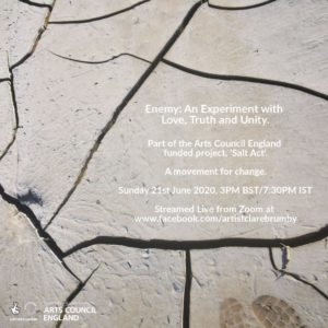 The title of the performance is ‘Enemy: An Experiment with Love, Truth and Unity’. Clare told us: “The philosophy behind this project is very much aligned with Gandhi’s approach to creating positive change and fighting injustice by beginning with a deep change within each individual. Also, the theme of this year’s International Yoga Day is ‘Yoga at Home and Yoga with Family’ and this fits in perfectly with Salt Act as an online peaceful protest that brings so many people together, giving them space to connect and re-emerge dancing in a show of unity, strength and resilience.”