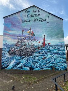 Another incredible thing about The Beatles piece is that the local kids were actively involved in the painting — passing down the heritage to the next generation. Opposite this powerful piece you’ll find the Black Pearl mural — a beautiful piece symbolic of the community built boat that has battled against nature and vandals — with a personal message from Jonnie Depp above it.