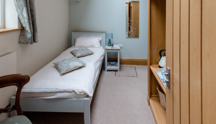 This single ground floor bedroom has a relaxing, comforting feel and is flooded with natural light. It is made up of shades of blues and creams and has lovely oak beams.