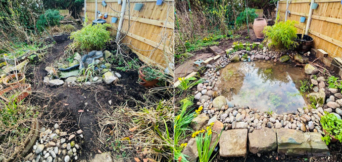 He continued: “Ponds are a big part of what I do. I build my ponds in a more natural way than usual — the liner is buried under a protective layer then in clay soil, as a pond would be in the countryside, and it is the same kind of pond that wildlife has evolved with. The native plants attract a wide variety of wildlife and some customers have even seen the endangered great crested newts move into their ponds.”