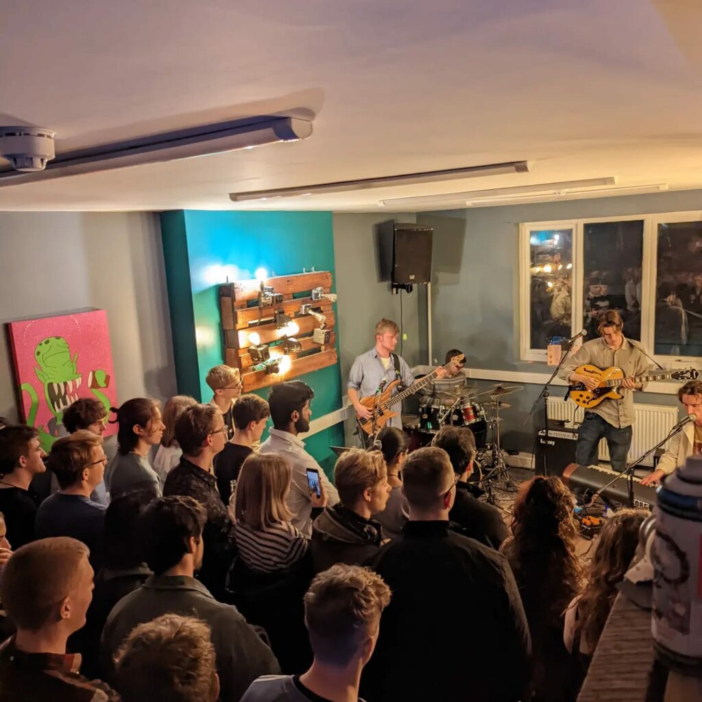 Round The Corner was opened by Jake Kellie and Andrew Coventry in November 2021 in response to the adversity that local musicians and creatives have been facing. Things such as the pandemic, the cost of living crisis and Brexit have all affected the industry, with many creatives lacking opportunity or support.
