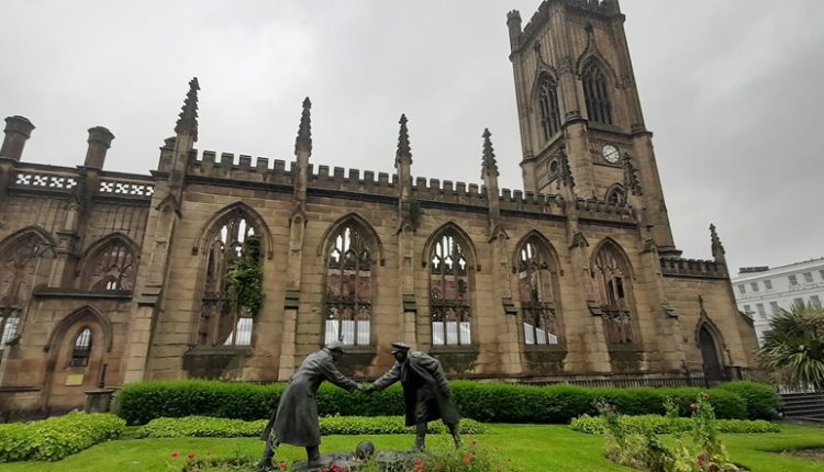 After Kevin told us how the first ever Virgin record store was located on Bold Street, we were told that the Radio City tower was originally a ventilation shaft and is actually the same height as the Anglican cathedral! We checked out the Moores brothers statue — John Moores was not only the founder of the university but also the man who founded Littlewoods and the pools!